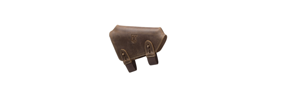 Busc en cuir avec deux attaches élastiques pour l'adapter à la crosse de la carabine.