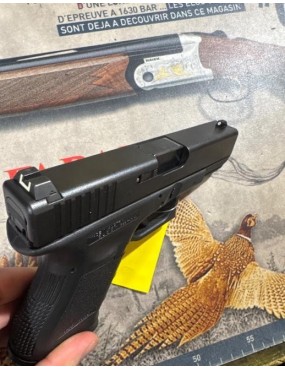 Pistolet Glock 19 gen 3 de calibre 9x19mm Para. Il possède un canon de 10cm.