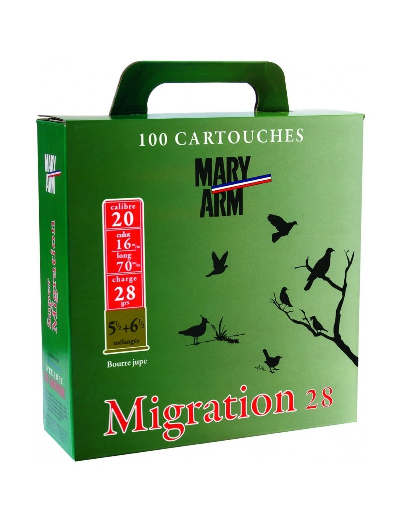 CARTOUCHES DE CHASSE MARY ARM PACK MIGRATION CAL20 PB N°5,5+6,5 28G BJ