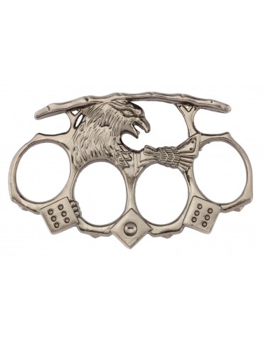 Poing américain 4 doigts en forme de dés à jouer et fond de paume en forme de tête de Pigargue à tête blanche, l'emblème américain.