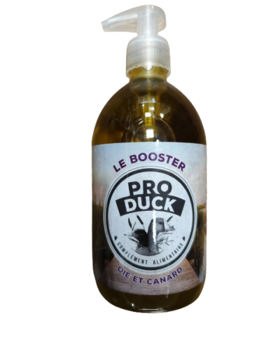 Le booster est un produit de la nouvelle génération Pro Duck. Mélange d'huile de chènevis et de graisse d'insecte, le but sera d'améliorer l'endurance et donc la vaillance, tout en réduisant les troubles liés au stress. Le booster équilibre les apports protéiniques grâce à sa partie insecte.