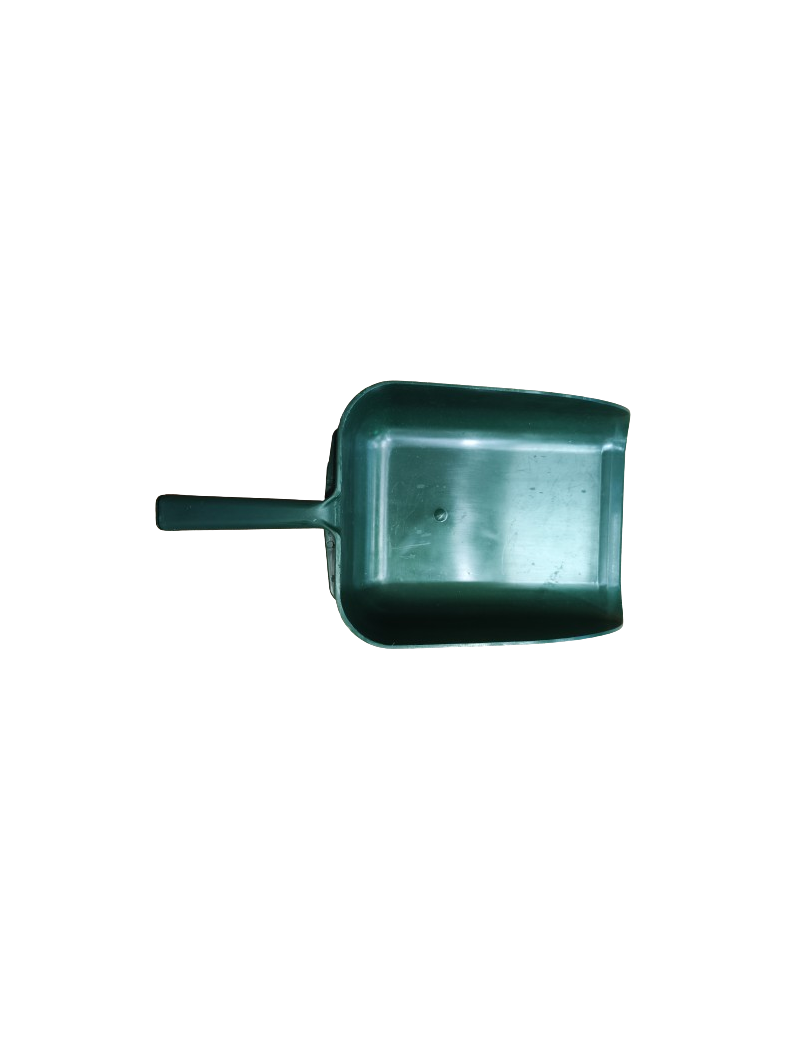 Pelle en plastique vert kaki pour 2kg d'aliment.