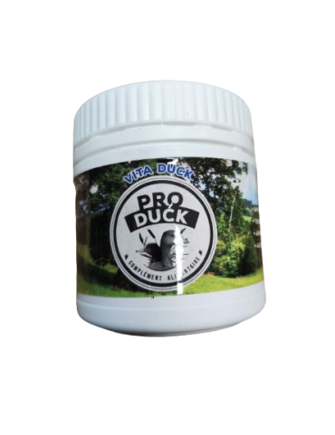 Le vita duck poudre est de retour en pot de 500gr/ Nous avons retravaillé la recette pour en augmenter ses taux de vitamines, notamment le taux de vitamine B, essentielle au plumage du canard. Elle est désormais parfaitement adaptée aux besoins essentiels des canards dans la prévention des carences, la protection du plumage et la relance énergetique pendant la mue.